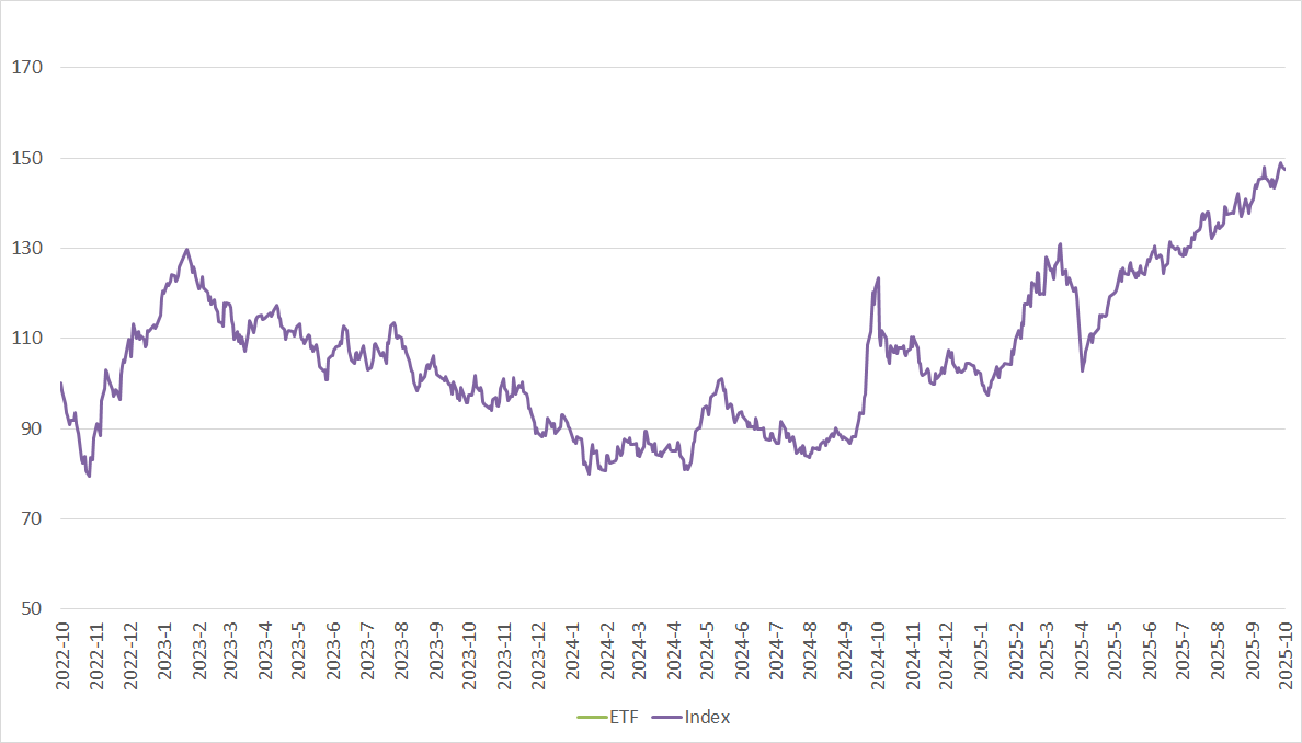 as of 30 Sept,2025 Fund Listing Date: 10 Oct,2022 Rolling 1-Year TD: -0.56% TD for calendar year 2024: -0.29 % TD for calendar year 2023: -0.08 % Tracking Error as of 30 Sept,2025 Fund Listing Date: 10 Oct,2022 Rolling 1-Year TE^: 0.12 % ^ Annualized based on the number of dealing days in the past year when daily TD is calculated. |