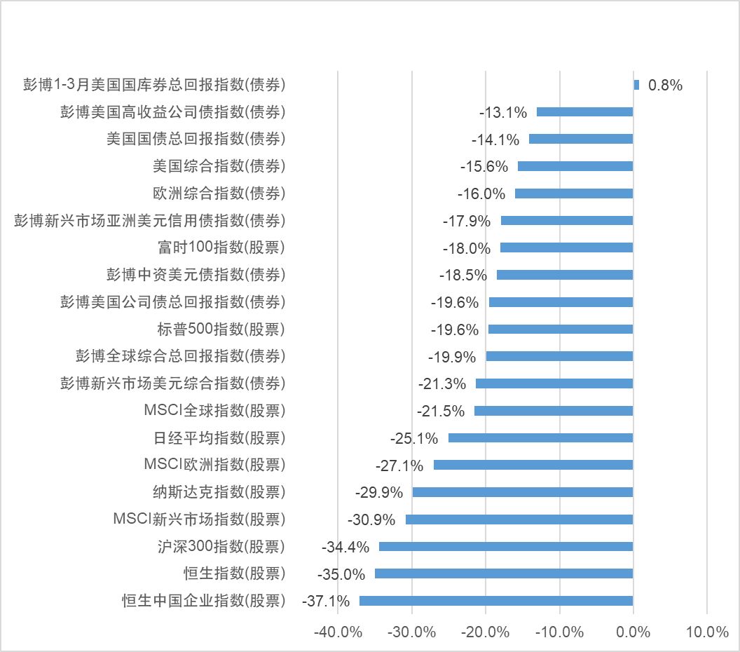 美联储目前基调非常鹰派。而美联储的转向需要通胀和/或经济数据走软的配合,短期仍有较大不确定性。在加息和地缘政治的影响下,今年以来市场大幅波动,股债双杀,各类资产表现都强差人意。唯一能取得正回报的就是超短久期的资产,例如货币基金或者1-3个月的国债。