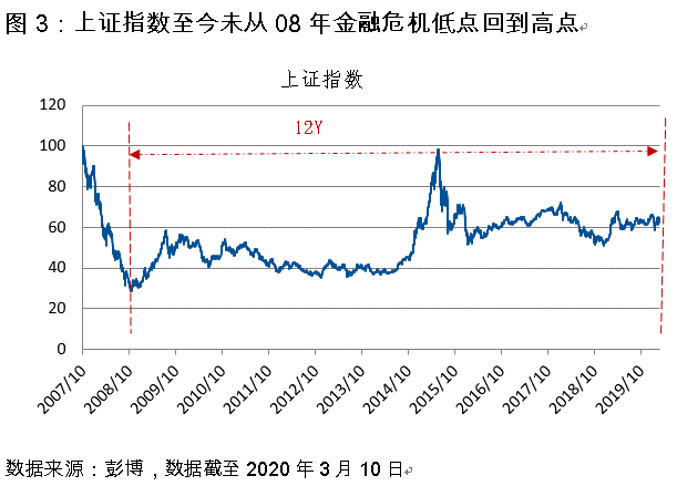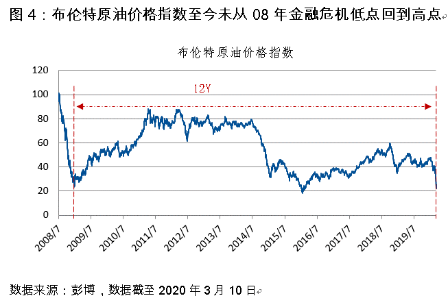 以笔者亲历的08年金融危机为例,风险资产中,美国股票(以标普500为例)花了3年重新站到前期高点;美国房价自低位艰难地爬升了9年才回到高点;最夸张的油价则在危机过后有一波反弹,此后再度跌落到比危机期间低点更低的价格,这些年虽也经历了几轮小周期,但起起伏伏没有摸到过金融危机前的高点,而这次新的石油危机也将其再次送到历史低点。