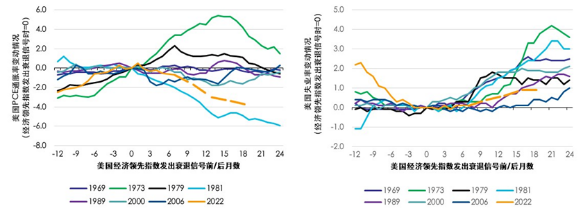 图1. 美国经济领先指标发出衰退信号前后通胀与失业变动情况