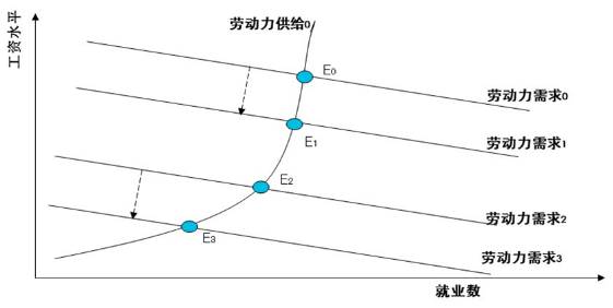 图2. 一个就业市场过热时期劳动力供求曲线的理论模型